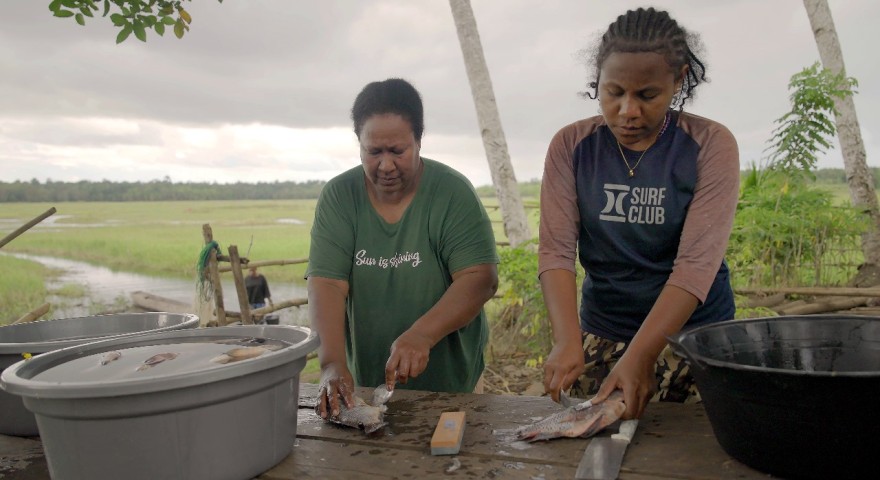 Selain itu, program ekonomi ini juga mencakup inisiatif penciptaan mata pencaharian alternatif dan perluasan akses pasar. Kami mendampingi masyarakat lokal dalam produksi ikan asin, VCO (minyak kelapa murni), dan penanaman sayuran di pekarangan, yang dijual atau dikonsumsi untuk kebutuhan sehari-hari. Sejauh ini, kami juga mendukung pembentukan Badan Usaha Milik Kampung (BUMK) di 3 kampung lokal yaitu Kindiki, Selil, dan Muting.