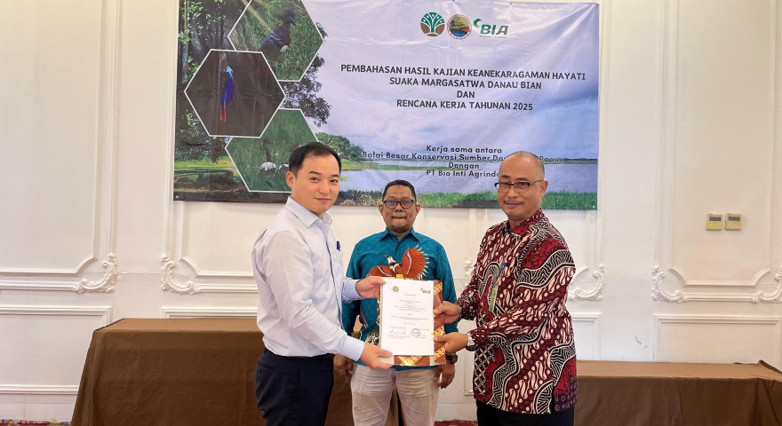 Bogor, 21 Februari 2025 – PT Bio Inti Agrindo (PT BIA) dan Balai Besar Konservasi Sumber Daya Alam (BBKSDA) Papua menandatangani Rencana Kerja Tahunan (RKT) 2025 untuk memperkuat upaya konservasi keanekaragaman hayati di Suaka Margasatwa (SM) Danau Bian. Acara ini berlangsung di Hotel Grand Savero, Bogor, dihadiri oleh Bae Gyutae perwakilan dari PT BIA, dan Kepala BBKSDA Papua, A.G. Martana, S.Hut., M.H. serta disaksikan oleh perwakilan Direktorat Jenderal Konservasi Sumber Daya Alam dan Ekosistem (KSDAE).